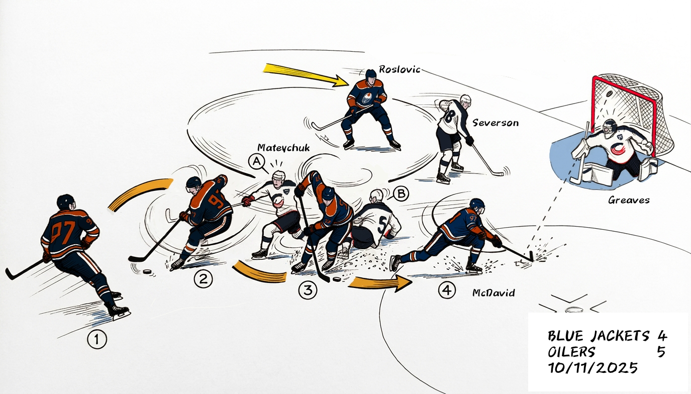 - Codice 02: il primo dei due gol segnati da Connor McDavid, al minuto 40’58” con il momentaneo 2-3 realizzato nel match Edmonton Oilers – Columbus Blue Jackets 5-4 ds (1-1, 0-2, 3-1; 1-0) del 10/11/2025.